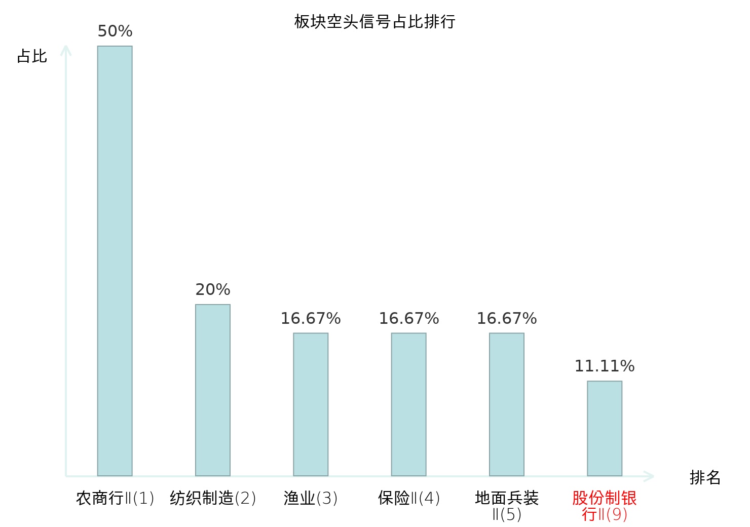 全市场所有行业板块中主力空头信号占比排名中,农商行Ⅱ板块位居第一。生物制品板块名次提升最快,较昨日上升121位。