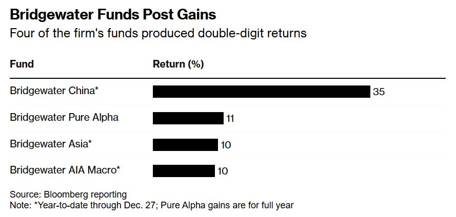 桥水基金录得强劲涨幅——该公司旗下四只基金实现两位数级别的强劲投资回报