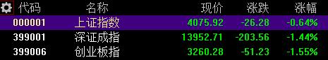 A股三大指数今日集体下跌,截至收盘,沪指跌0.64%报4075点,深证成指跌1.44%,创业板指跌1.55%。全市场成交额2.19万亿元,较前一交易日缩量3090亿元,超3700股下跌。