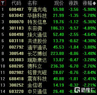 F5G概念股回撤,亨通光电跌近6%,华脉科技、特发信息跌超5%。