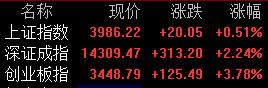 A股三大指数今日集体走高,截至收盘,沪指涨0.51%报3986点,盘中一度重回4000点,深证成指涨2.24%,创业板指涨3.78%创逾4年新高。全市场成交额2.34万亿元,较前一交易日增量1903亿元,近4000股上涨。