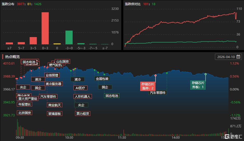 消息面上,4月9日,中信证券发布2026年第一季度业绩快报,归属于母公司股东的净利润102.16亿元,同比增加54.6%;基本每股收益0.67元。4月10日,上证指数时隔14个交易日重回4000点。