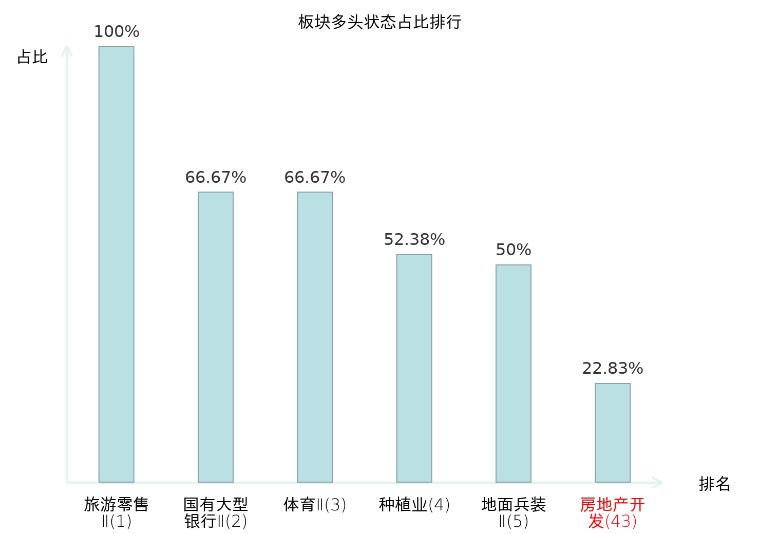 全市场所有行业板块中主力多头状态占比排名中,旅游零售Ⅱ板块位居第一。股份制银行Ⅱ板块名次提升最快,较昨日上升54位。