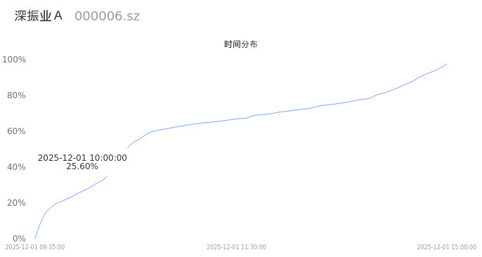 000006深振业A2025年12月01日成交42.20万手,成交金额4.45亿,相较昨日放量11.35万手,换手率3.13%,成交清淡。