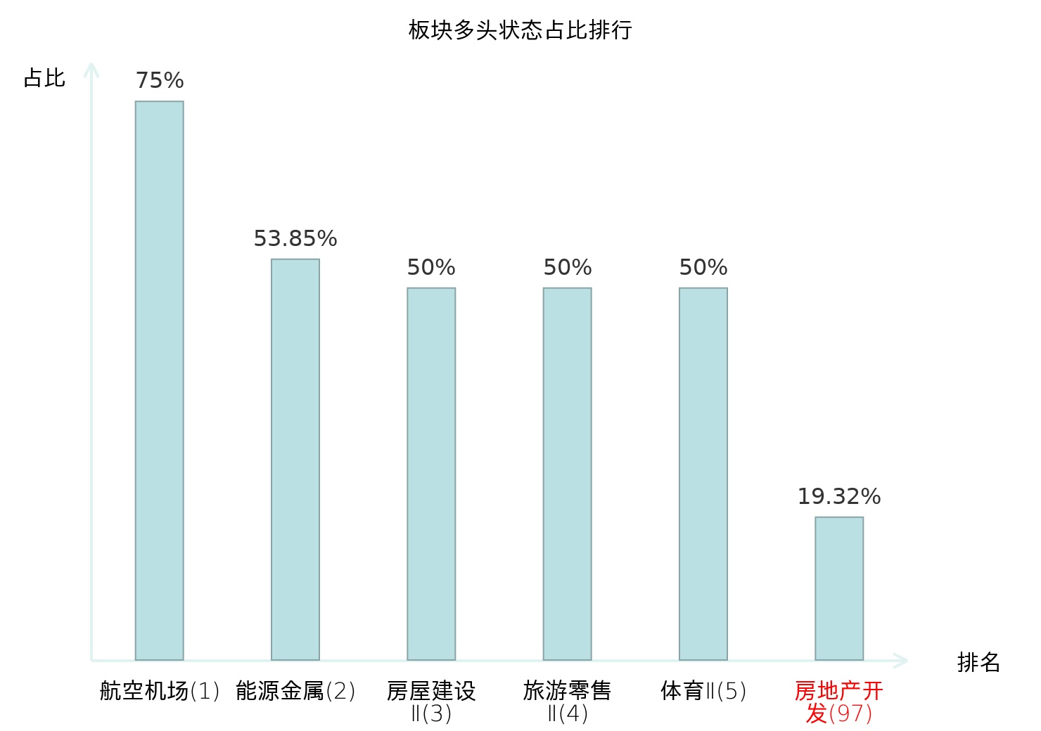 全市场所有行业板块中主力多头状态占比排名中,航空机场板块位居第一。其他电子Ⅱ板块名次提升最快,较昨日上升53位。