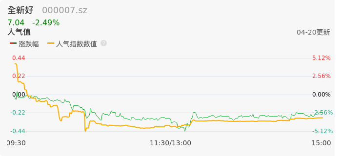 04月20日,全新好收报7.04,股价涨幅-2.49%,成交金额8847.31万元,换手率4.07%。