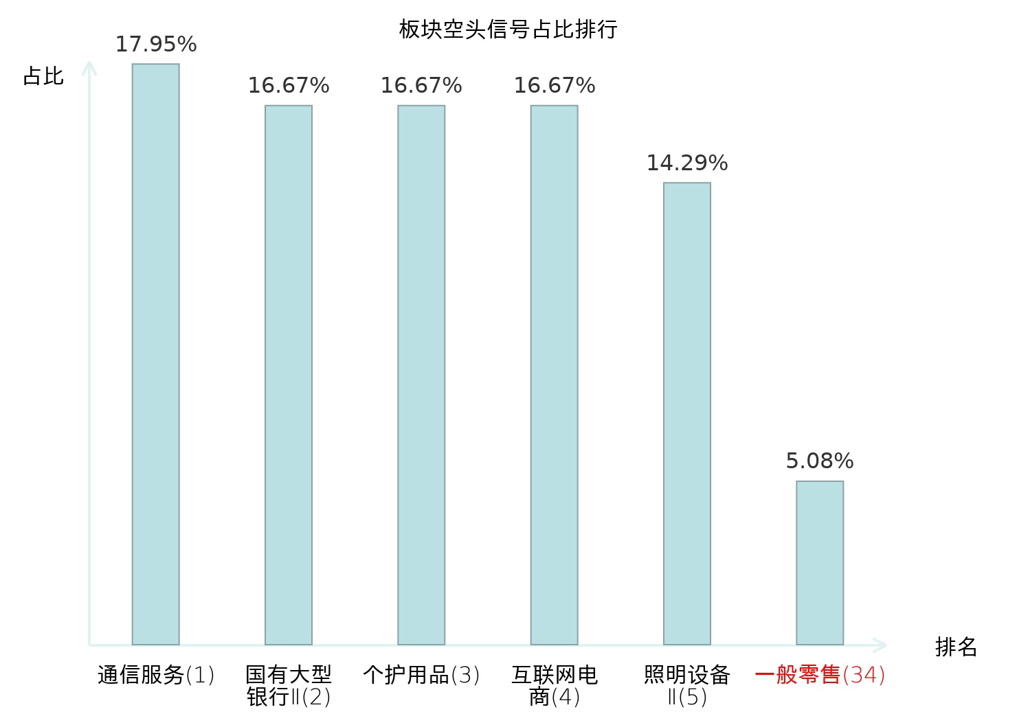全市场所有行业板块中主力空头信号占比排名中,通信服务板块位居第一。种植业板块名次提升最快,较昨日上升110位。