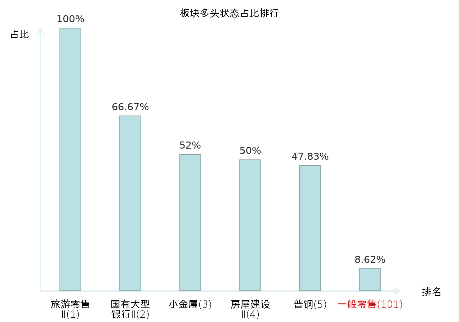 全市场所有行业板块中主力多头状态占比排名中,旅游零售Ⅱ板块位居第一。其他电源设备Ⅱ板块名次提升最快,较昨日上升55位。