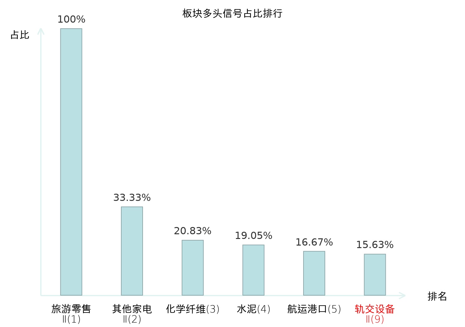 从主力宝信号数据分析,神州高铁所属的轨交设备Ⅱ板块中共有5只股票发出主力多头信号,主力多头信号占比在全行业中排名第9位,较昨日上升62位。较高的排名表明主力当日买入意愿较强,此次排名上升反映了主力对该板块态度的积极调整。全市场所有行业板块中,旅游零售Ⅱ板块的主力多头信号占比最高,位居第一;旅游零售Ⅱ板块名次提升最快,较昨日上升130位。这些变动揭示了不同行业间主力资金偏好的变化,为投资者提供了关于市场情绪和潜在投资机会的重要线索。