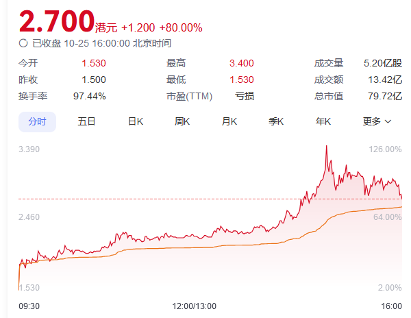 大众公用A股今日开盘即“一字”涨停,收盘报3.8元/股,涨停板上封单超40万手。其港股午后飙升,盘中一度大涨近127%,收盘上涨80%。