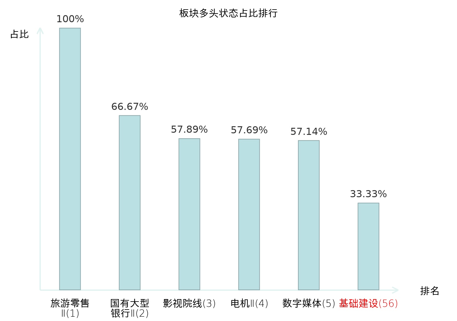 全市场所有行业板块中主力多头状态占比排名中,旅游零售Ⅱ板块位居第一。专业连锁Ⅱ板块名次提升最快,较昨日上升56位。