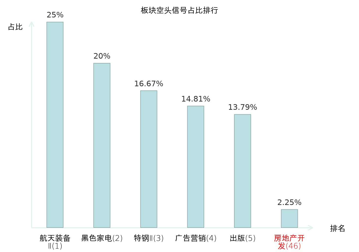 全市场所有行业板块中主力空头信号占比排名中,航天装备Ⅱ板块位居第一。软件开发板块名次提升最快,较昨日上升119位。