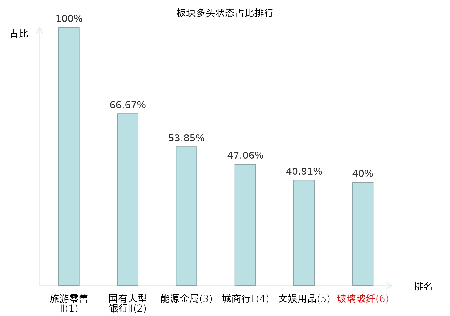全市场所有行业板块中主力多头状态占比排名中,旅游零售Ⅱ板块位居第一。保险Ⅱ板块名次提升最快,较昨日上升57位。