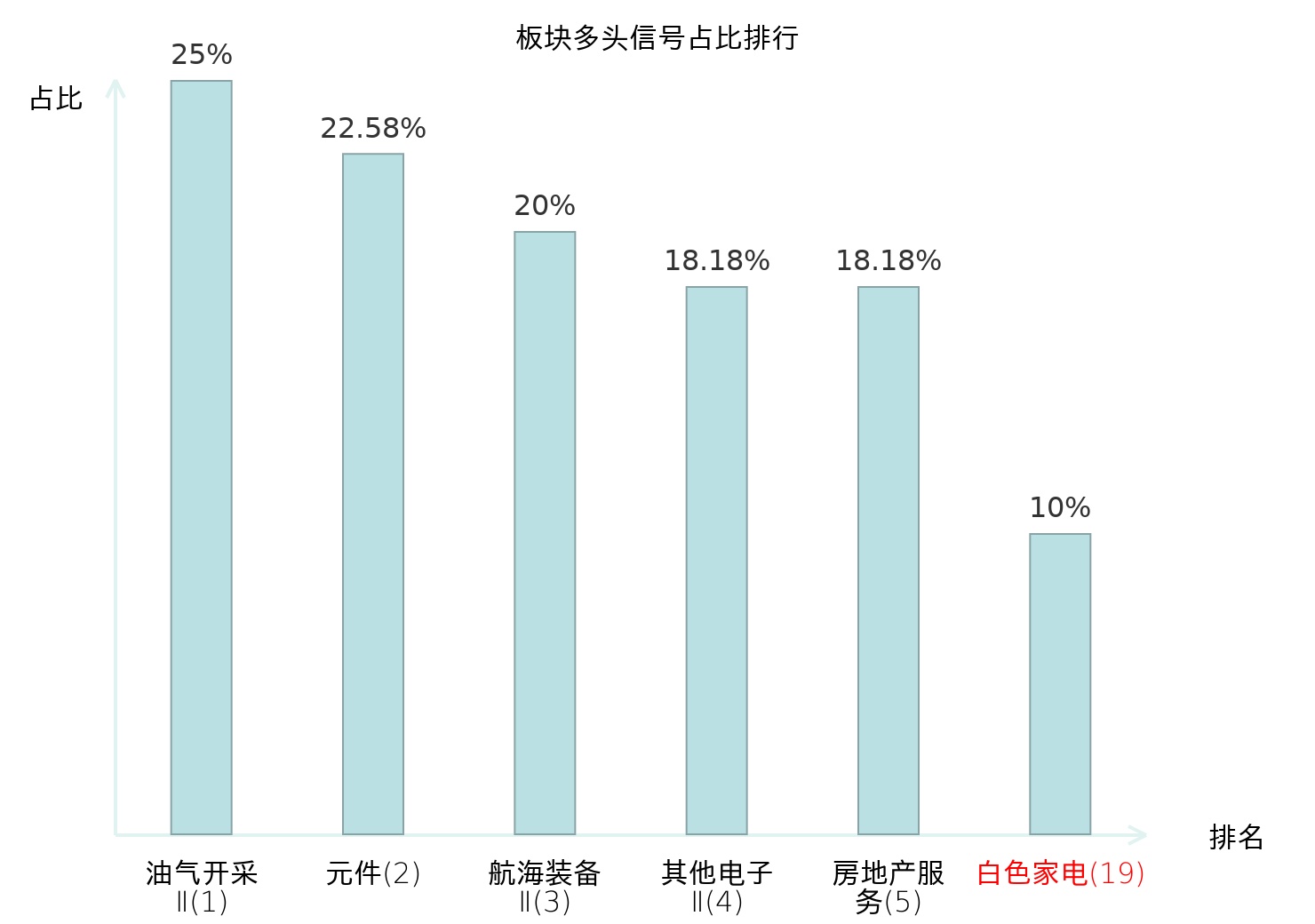 全市场所有行业板块中主力多头信号占比排名中,油气开采Ⅱ板块位居第一。油气开采Ⅱ板块名次提升最快,较昨日上升125位。