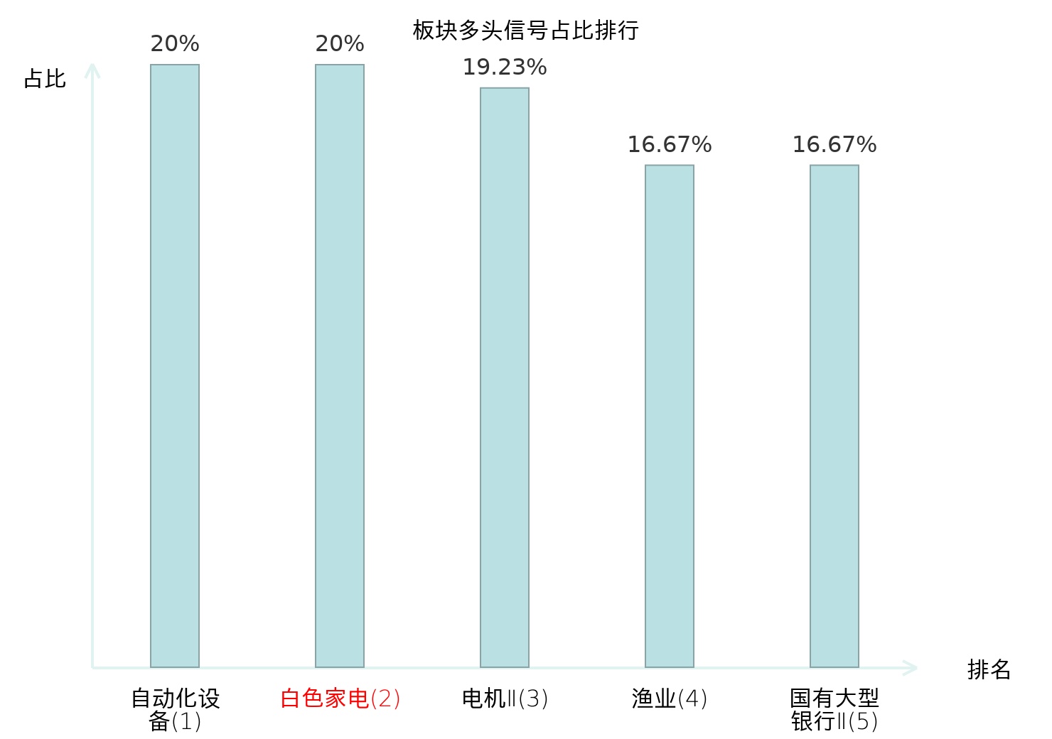 全市场所有行业板块中主力多头信号占比排名中,自动化设备板块位居第一。渔业板块名次提升最快,较昨日上升118位。
