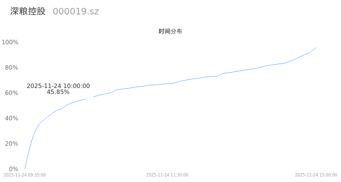 000019深粮控股2025年11月24日成交50.57万手,成交金额3.87亿,相较昨日缩量8.59万手,换手率12.15%,成交活跃。