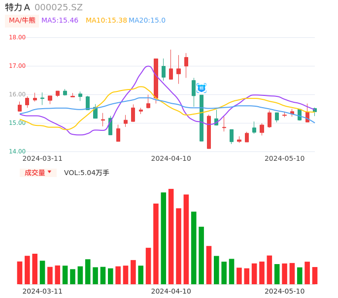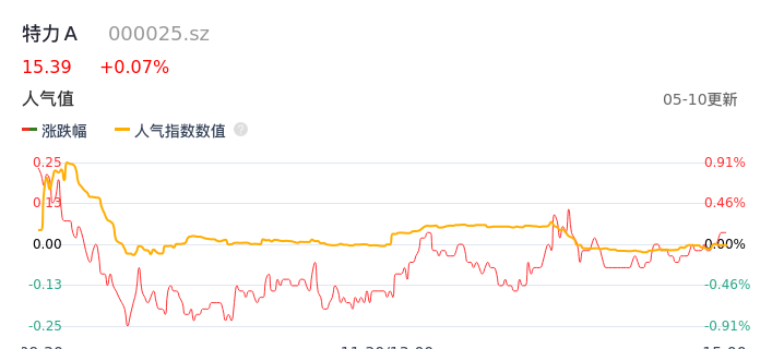 05月10日,特力A收报15.39,股价涨幅0.07%,成交金额7739.87万元,换手率1.28%。
