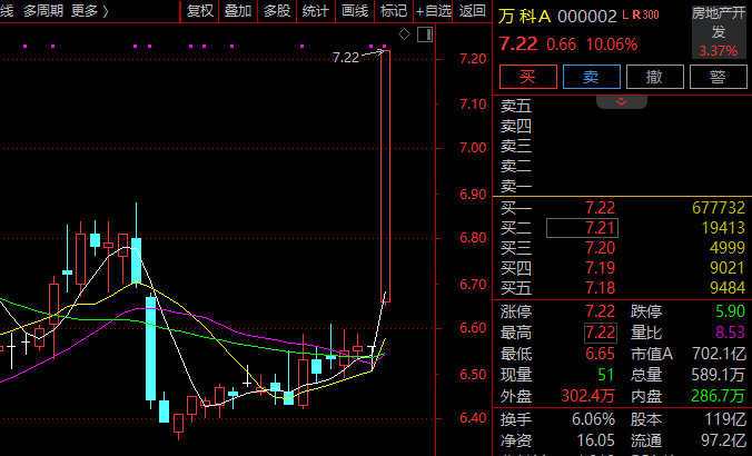 盘面上,A、H两地房地产板块今日早间全线大涨,万科A、万通发展涨停,荣盛发展、金地集团、深深房A等10余股涨超5%。