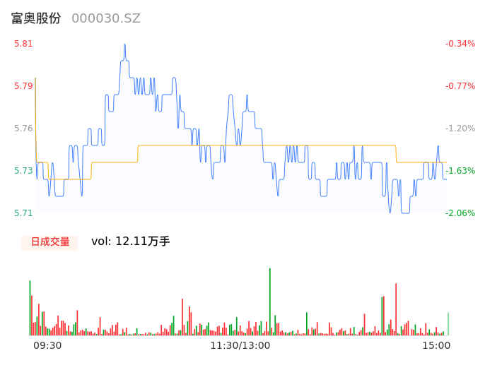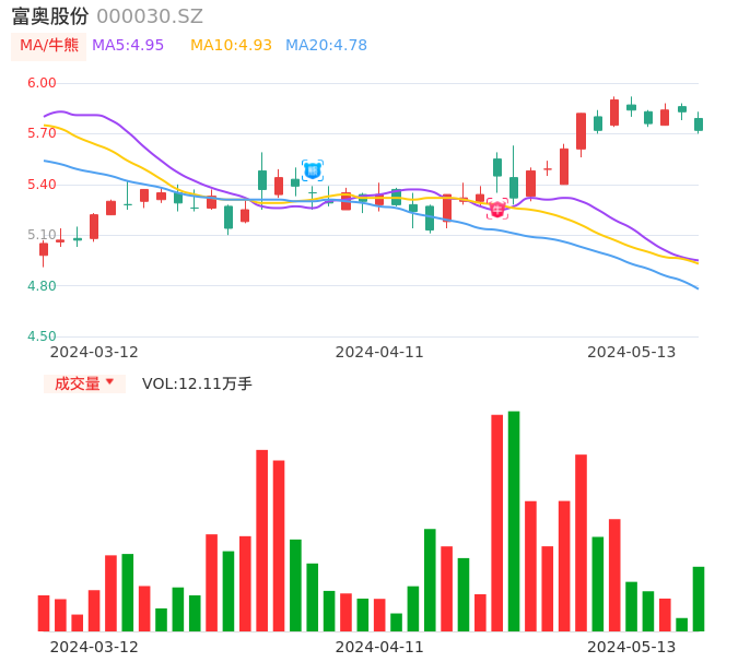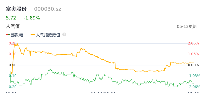 05月13日,富奥股份收报5.72,股价涨幅-1.89%,成交金额6955.60万元,换手率0.72%。