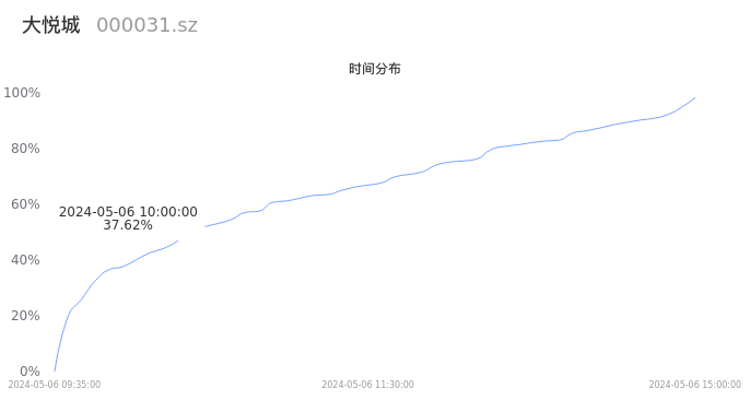 000031大悦城2024年05月06日成交27.16万手,成交金额7344.99万元,相较昨日缩量9.38万手,换手率0.68%,成交清淡。