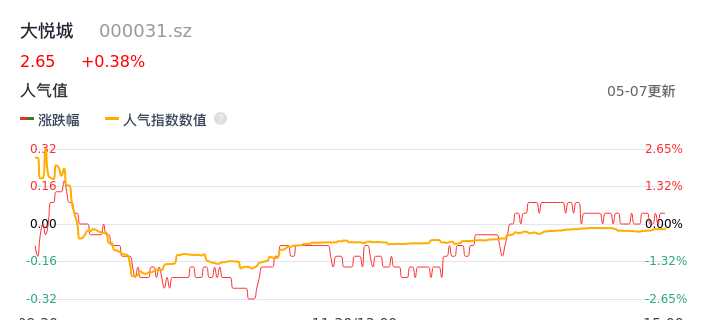 05月07日,大悦城收报2.65,股价涨幅0.38%,成交金额5801.24万元,换手率0.55%。