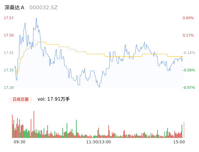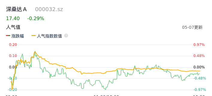 05月07日,深桑达A收报17.40,股价涨幅-0.29%,成交金额3.12亿元,换手率2.78%。