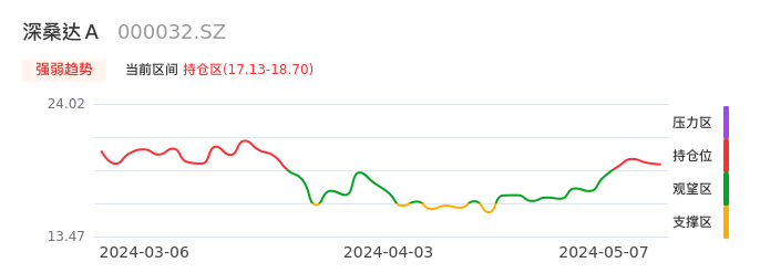 我们来看一下该股的九方特色指标强弱趋势的情况:深桑达A自04月29日从观望区上穿到持仓区。股价近期在多头区域回调整理。后续重点关注多空分界点的争夺:17.13元。如未能有效站稳则可能重新回到空头行情。