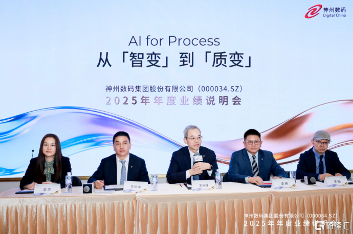 4月2日,神州数码(000034.SZ)举办2025年度业绩说明会。神州数码联席董事长王冰峰携更趋年轻与专业化的新管理团队亮相,解读2025年度业绩和战略落地亮点,并首次披露神州数码紧抓AI时代机遇,深度践行"AI for Process"的新战略布局,进一步夯实转型增长新引擎。