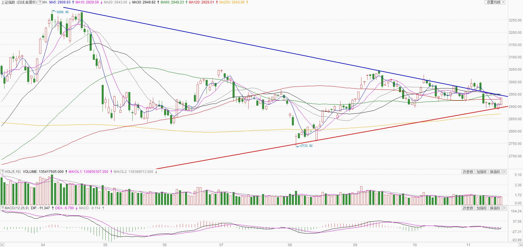 2. 技术面看,上证光头光脚中阳线突破120日均线,KDJ拐头,MACD绿柱收敛突破0轴的迹象,量能未见明显放大,上方受多条均线压制,预计后市往上回补前期跳空缺口,量能是关键。