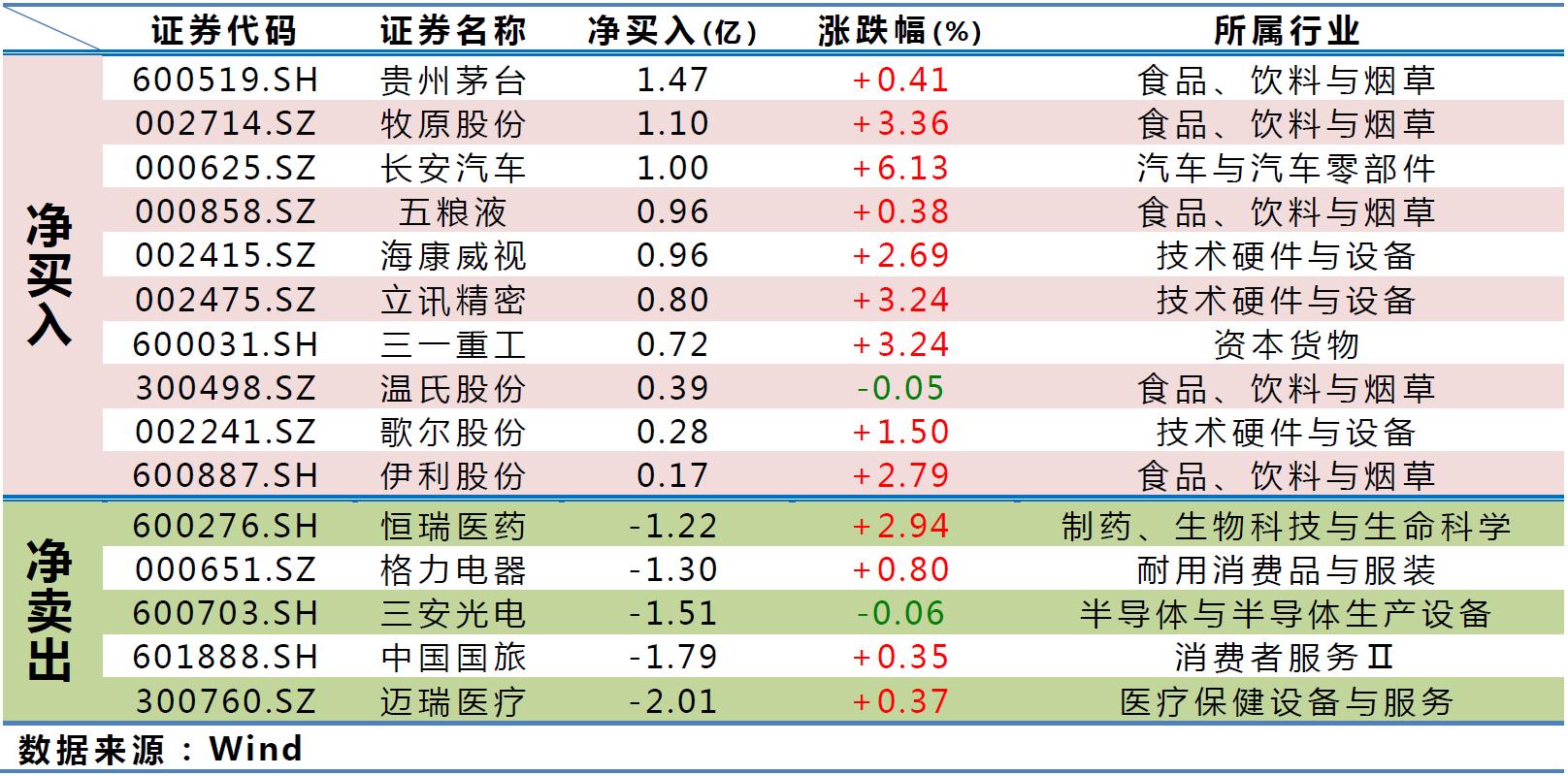 净卖出方面,前期高位消费白马龙头继续显著承压,北向资金短线兑利压力显现。