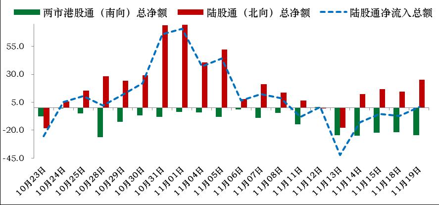 陆港通资金整体转向以北向净资金流为主,南北水分歧加剧。主要渠道中,两市港股通南向总净额小幅回升,深市港股通显著放量,沪市港股通南向净额回落;沪深股通北向净流入总额大幅上升,沪股通重新转为资金北上净流入,深股通微幅放量。