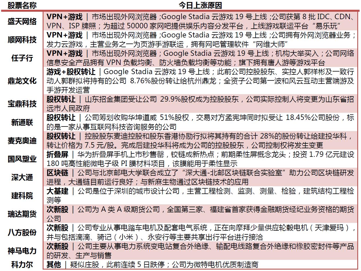 当然,今天股指中最猛的是创业板,板块里带头冲锋的非游戏莫属。近来国内电竞政策暖风不断,谷歌云游戏上线成功点燃市场热情,于是沉默中的资金爆发了~~~不过呢,消息利好并未带来坚实的基本面支撑,游戏概念短期分化的可能性不可不防。