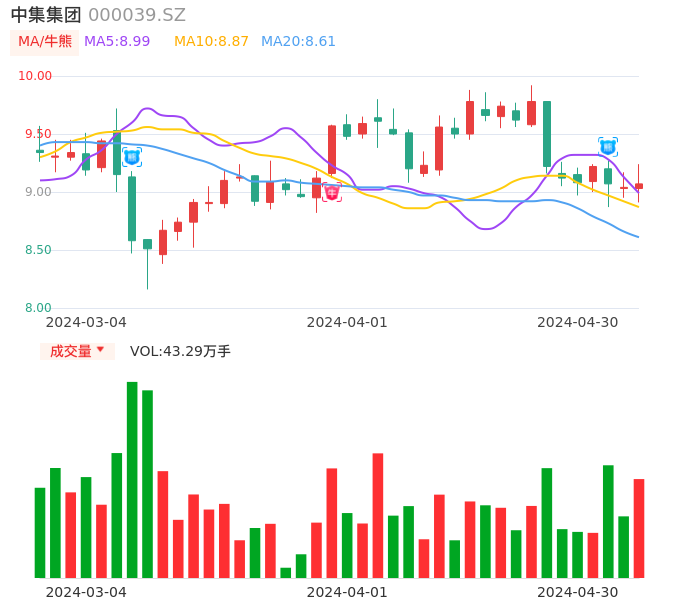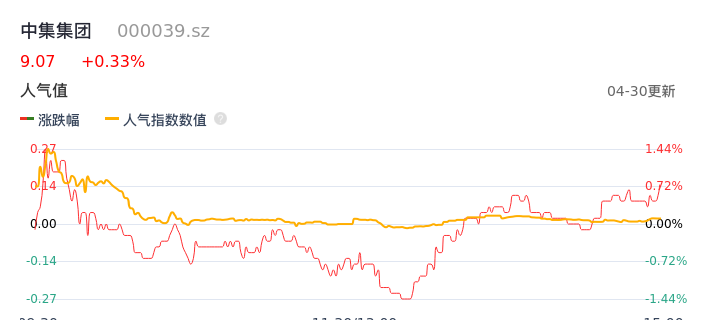 04月30日,中集集团收报9.07,股价涨幅0.33%,成交金额3.91亿元,换手率1.88%。