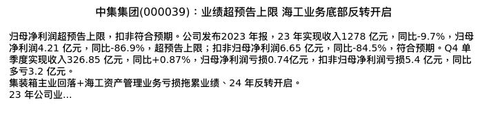 值得注意的是:2024年04月广发证券的代川/孙柏阳/汪家豪分析师,首次发布关于中集集团的研究报告,标题为:中集集团(000039):业绩超预告上限 海工业务底部反转开启。