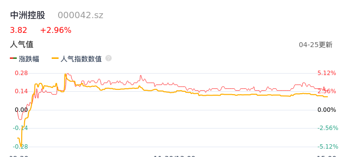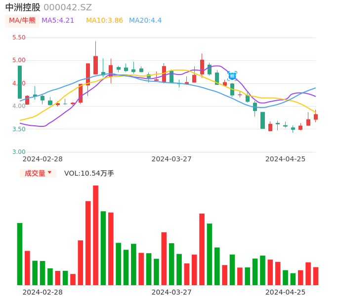 04月25日,中洲控股收报3.82,股价涨幅2.96%,成交金额4023.45万元,换手率1.59%。