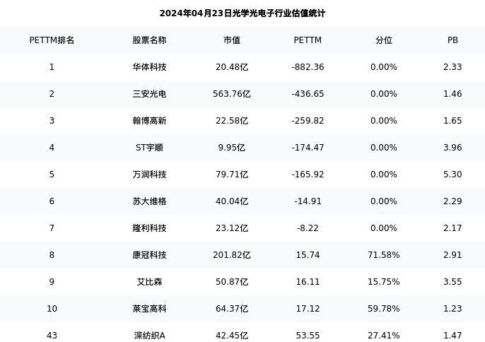 深纺织A最新报告期数据为年报,下表汇总了光学光电子行业内市值靠前的公司年报主要经营数据