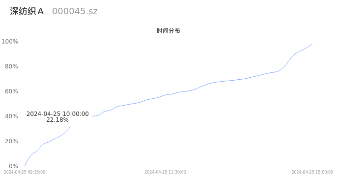 000045深纺织A2024年04月25日成交3.37万手,成交金额2983.27万元,相较昨日缩量1.10万手,换手率0.74%,成交清淡。