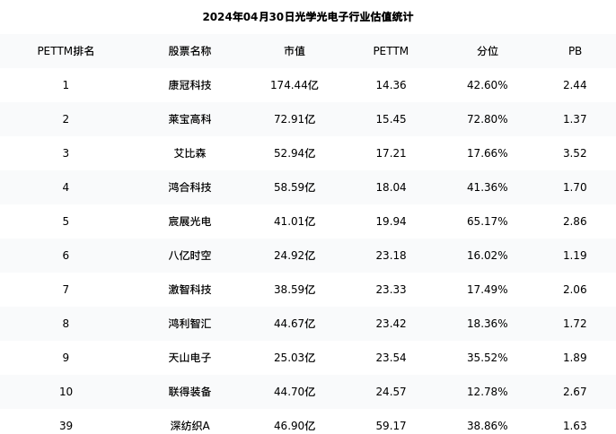 深纺织A最新报告期数据为一季度,下表汇总了光学光电子行业内市值靠前的公司一季度主要经营数据