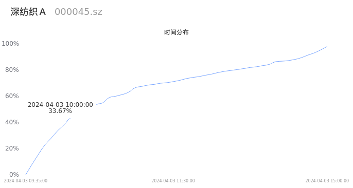 000045深纺织A2024年04月03日成交4.39万手,成交金额4203.01万元,相较昨日缩量2.25万手,换手率0.96%,成交清淡。