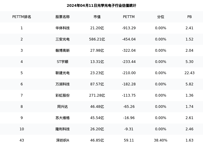 深纺织A最新报告期数据为年报,下表汇总了光学光电子行业内市值靠前的公司年报主要经营数据