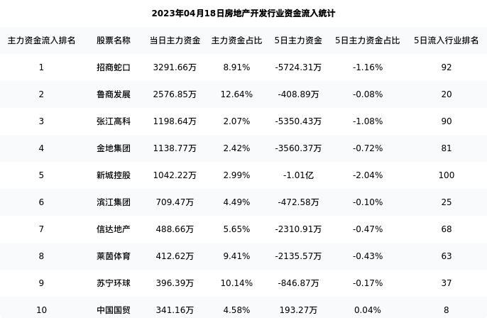 下表为今日行业内流入前10股票的信息