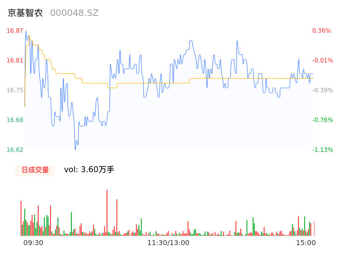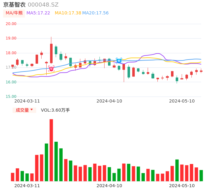 05月10日,京基智农收报16.78,股价涨幅-0.18%,成交金额6039.61万元,换手率0.69%。