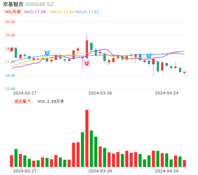 04月24日,京基智农收报16.28,股价涨幅0.12%,成交金额3857.45万元,换手率0.46%。