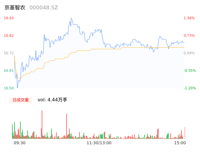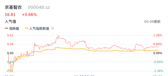 05月09日,京基智农收报16.81,股价涨幅0.66%,成交金额7444.54万元,换手率0.85%。