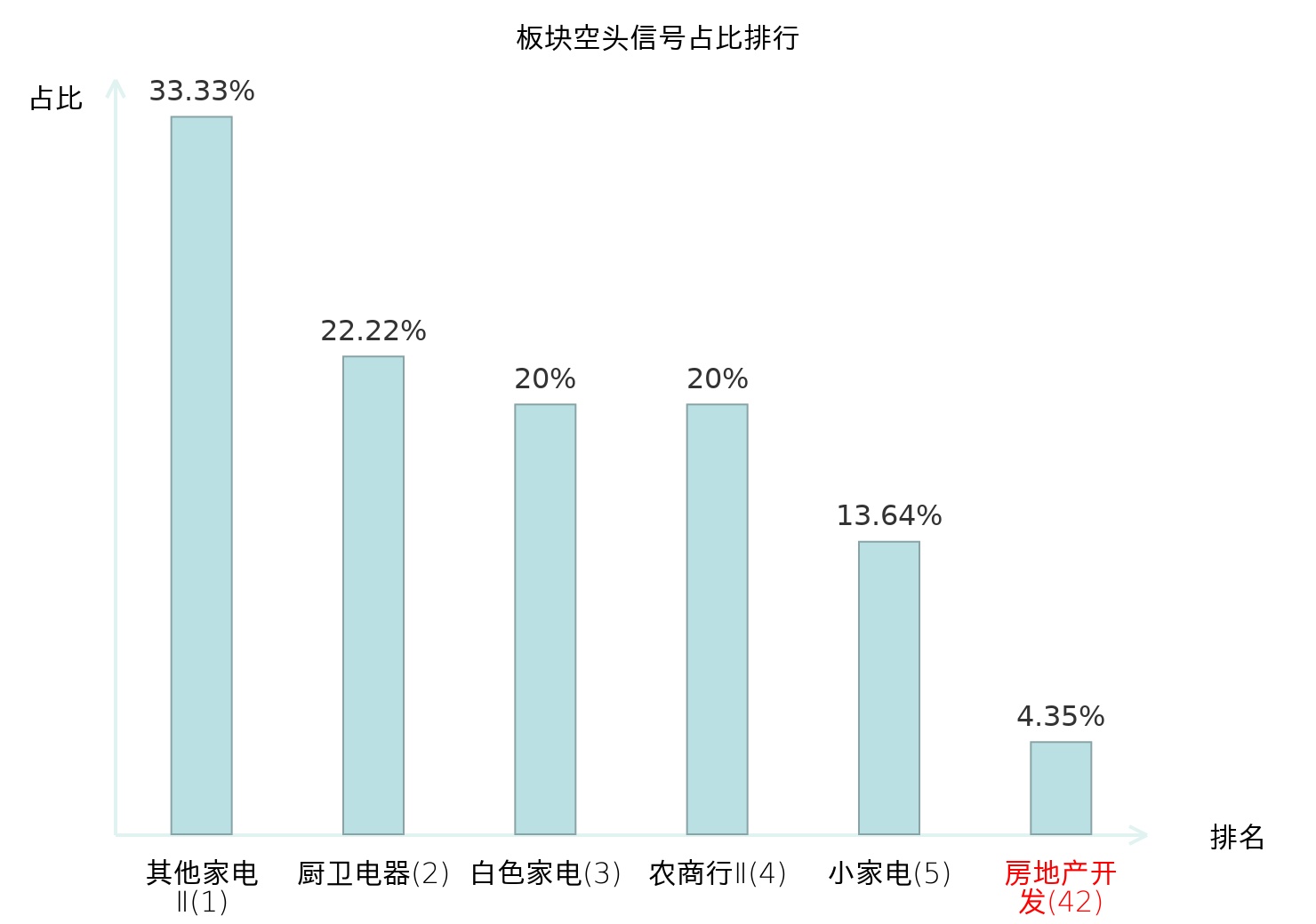 全市场所有行业板块中主力空头信号占比排名中,其他家电Ⅱ板块位居第一。地面兵装Ⅱ板块名次提升最快,较昨日上升107位。