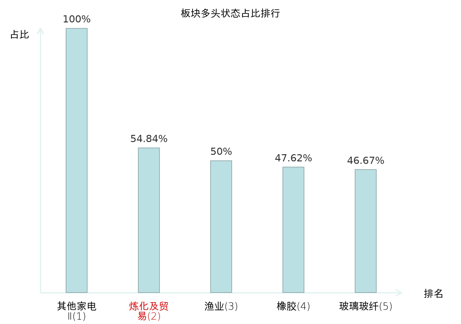 全市场所有行业板块中主力多头状态占比排名中,其他家电Ⅱ板块位居第一。铁路公路板块名次提升最快,较昨日上升37位。