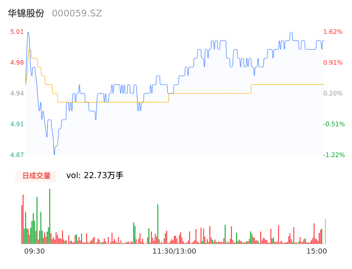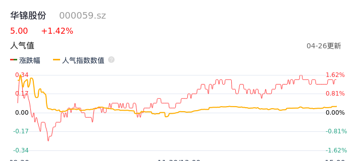 04月26日,华锦股份收报5.00,股价涨幅1.42%,成交金额1.13亿元,换手率1.42%。