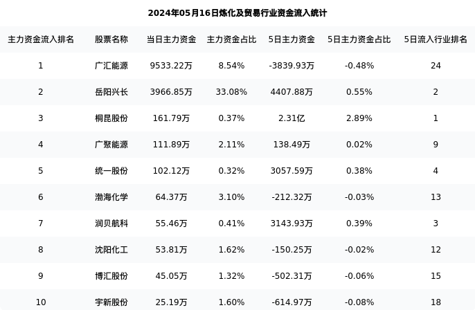 从主力资金流向来看,炼化及贸易行业今日主力资金流入22.83亿元,在所有申万二级行业中排名:16/131。