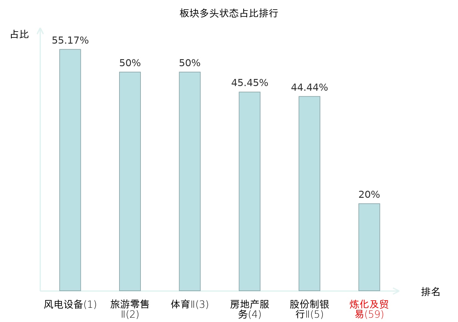 全市场所有行业板块中主力多头状态占比排名中,风电设备板块位居第一。保险Ⅱ板块名次提升最快,较昨日上升64位。