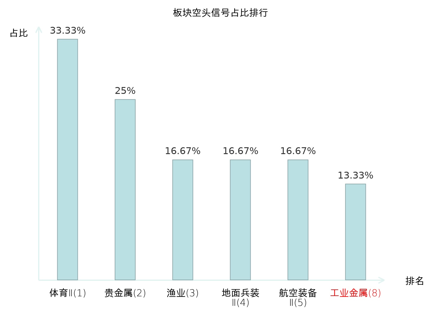 全市场所有行业板块中主力空头信号占比排名中,体育Ⅱ板块位居第一。软件开发板块名次提升最快,较昨日上升120位。